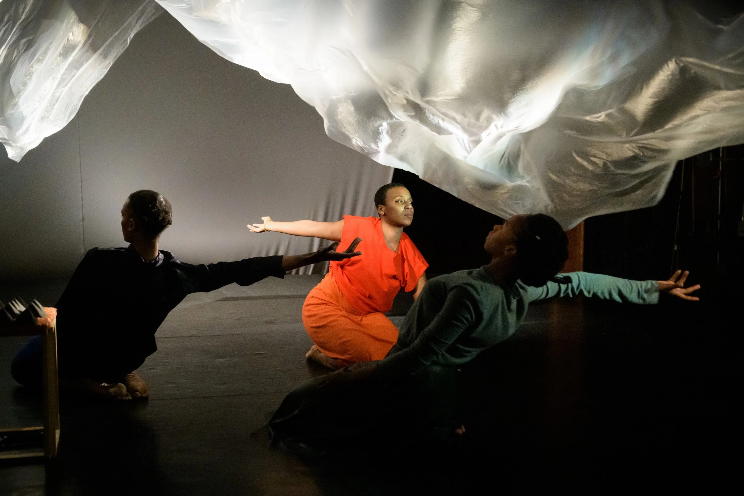 Okwui Okpokwasili, Audrey Hailes, and Khadidiatou Bangoura in Adaku’s revolt. Abrons Arts Center, New York, NY. photo by Ian Douglas, 2019.
