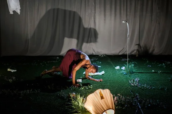 Okwui Okpokwasili in poor people's tv room. photo by Paul B. Goode, 2017.