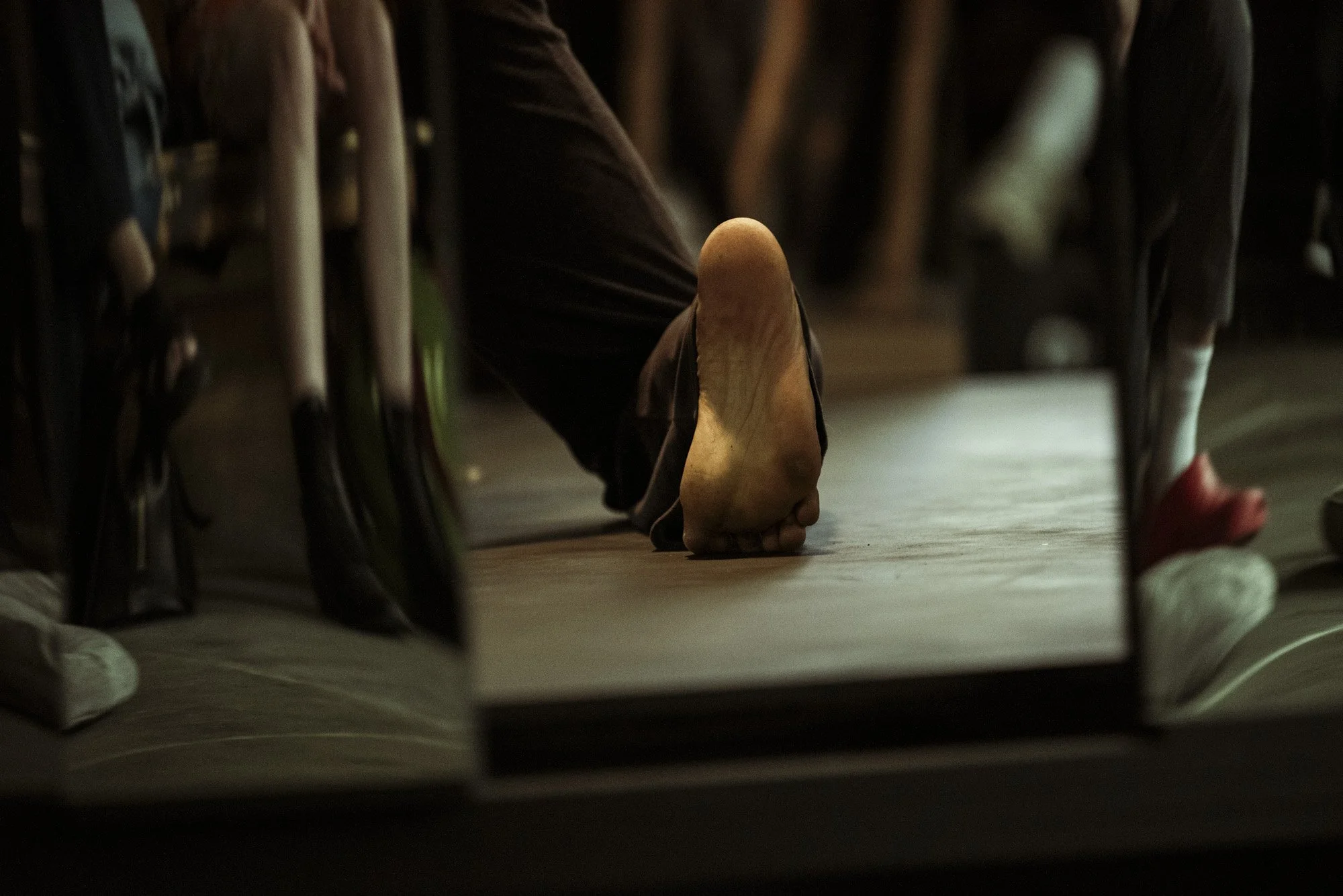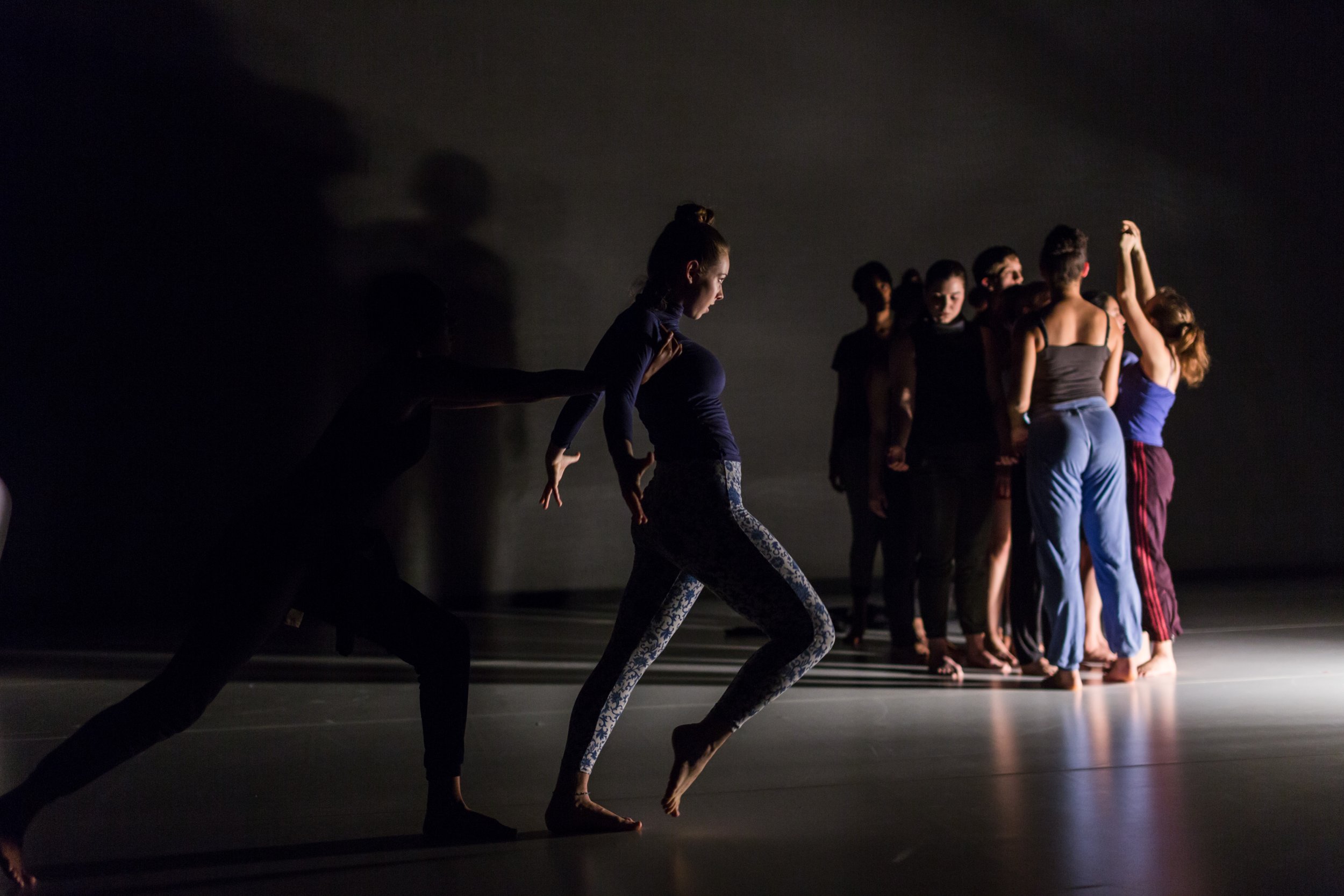 Dance students from Barnard College/Columbia University in at the anterior edge. New York Live Arts, New York, NY. photo by Jo Chiang, 2017.