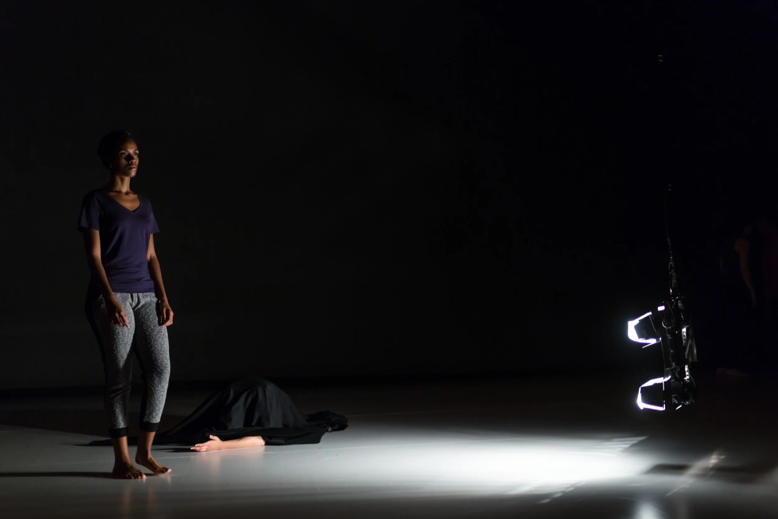 Dance student from Barnard College/Columbia University in at the anterior edge. New York Live Arts, New York, NY. photo by Jo Chiang, 2017.